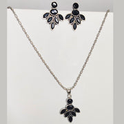 Enhance your ethnic style with this oxidized silver necklace set featuring a beautifully crafted pendant and matching earrings adorned with elegant black stones.