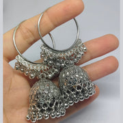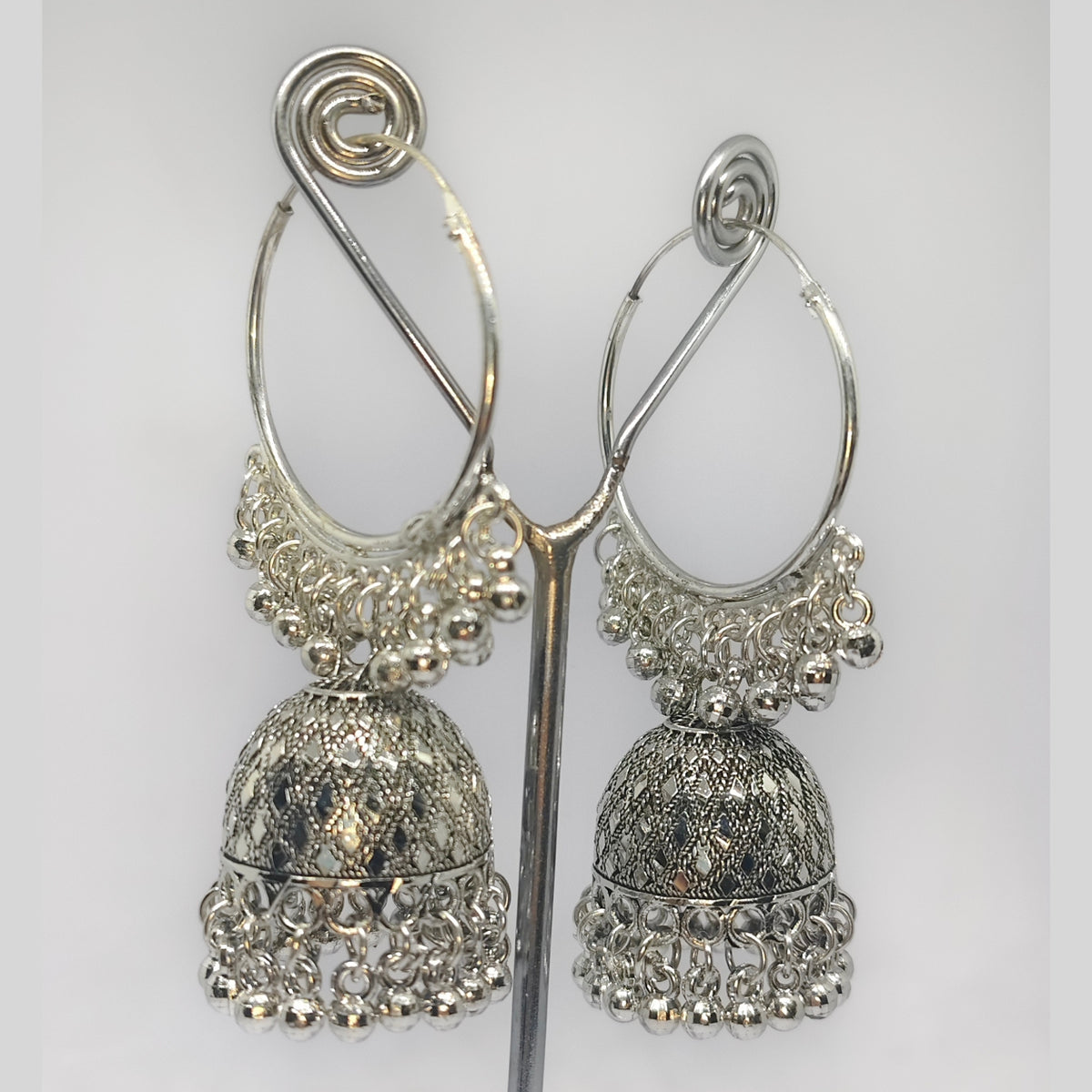 Elevate your ethnic look with these beautifully crafted Silver Plated Jhumka Earrings. Designed with a classic dome-shaped pattern and intricate...